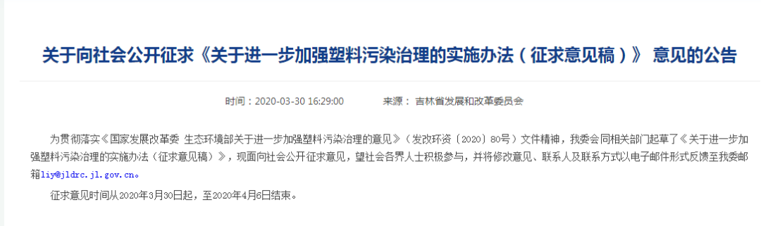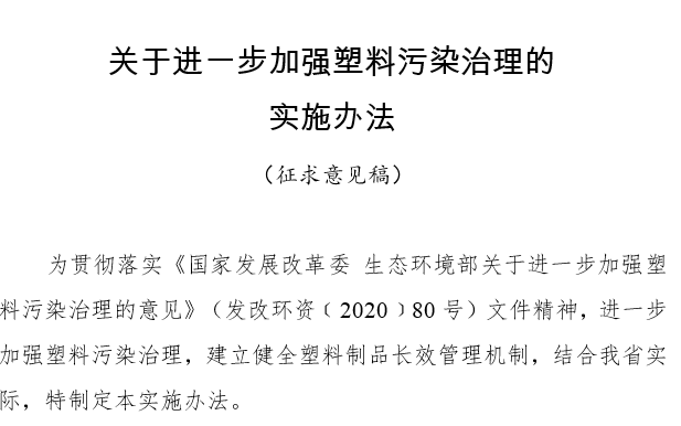 近日,河北出台塑料制品禁限名录的通知在业内引起了一阵波澜,这几日吉林省、广西壮族自治区亦分别组织起草了《关于进一步加强塑料污染治理的实施方案(征求意见稿)》。随着各个地区的逐步推广,新一波禁塑令覆盖全国还会远吗?各软包厂请早日做好准备!关于向社会公开征求《关于进一步加强塑料污染治理的实施办法(征求意见稿)》 意见的公告为贯彻落实《国家发展改革委 生态环境部关于进一步加强塑料污染治理的意见》(发改环资﹝2020﹞80号)文件精神,我委会同相关部门起草了《关于进一步加强塑料污染治理的实施办法(征求意见稿)》,现面向社会公开征求意见,望社会各界人士积极参与,并将修改意见、联系人及联系方式以电子邮件形式反馈至我委邮箱liy@jldrc.jl.gov.cn。 征求意见时间从2020年3月30日起,至2020年4月6日结束。 到2020年,进一步巩固“禁塑令”成果,全面禁止生产和销售一次性不可降解塑料袋、塑料餐具等塑料制品。到2022年,替代产品有效推广,塑料废弃物资源化利用水平大幅提高。到2025年,塑料制品从生产流通到使用回收全流程管理制度基本建立,替代产品开发应用水平进一步提高,塑料污染得到有效控制。1、禁止生产、销售不符合规定的塑料制品。全省范围内禁止生产和销售一次性不可降解塑料袋、塑料餐具、厚度小于0.01毫米的聚乙烯农用地膜。禁止以医疗废物为原料制造塑料制品,严禁废塑料进口。到2020年底,禁止生产和销售一次性塑料棉签;禁止生产含塑料微珠的日化产品(具体产品种类按照国家相关规定执行)。2、逐步淘汰不可降解快递塑料包装。逐步淘汰不可降解的塑料包装袋、一次性塑料编织袋等,降低不可降解的塑料胶带使用量。督促寄递企业采购使用符合国家标准、行业标准及国家规定的包装产品。到2020年底,符合标准的包装材料应用比例达到90%以上;到2025年底,全省范围邮政快递网点禁止使用不可降解的塑料包装袋、塑料胶带、一次性塑料编织袋等。